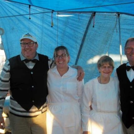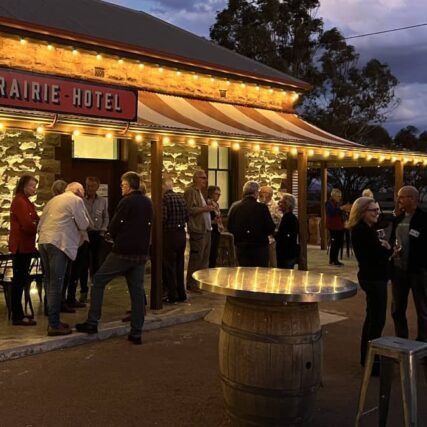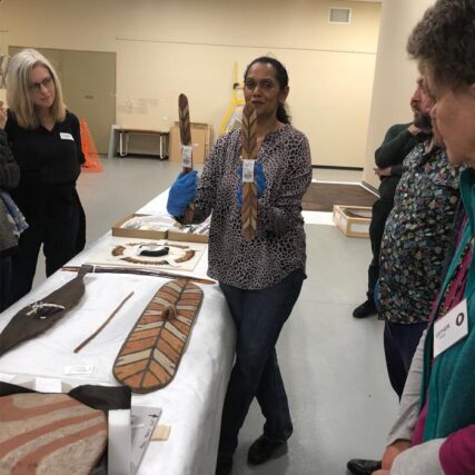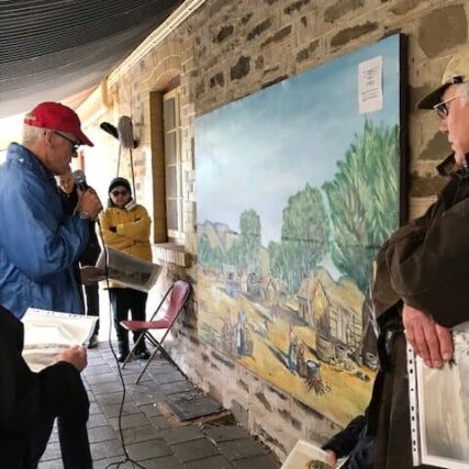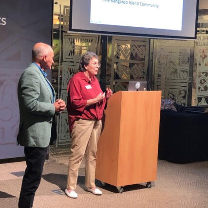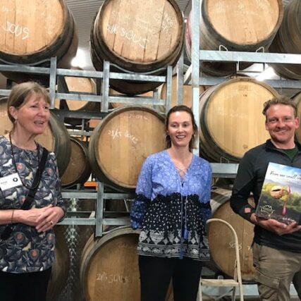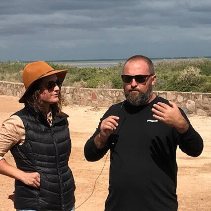 Expedition Leader, Rose Dow, interviews farmers Jane Greenslade and Emma Leonard about agricultural practices on Yorke Peninsula.
